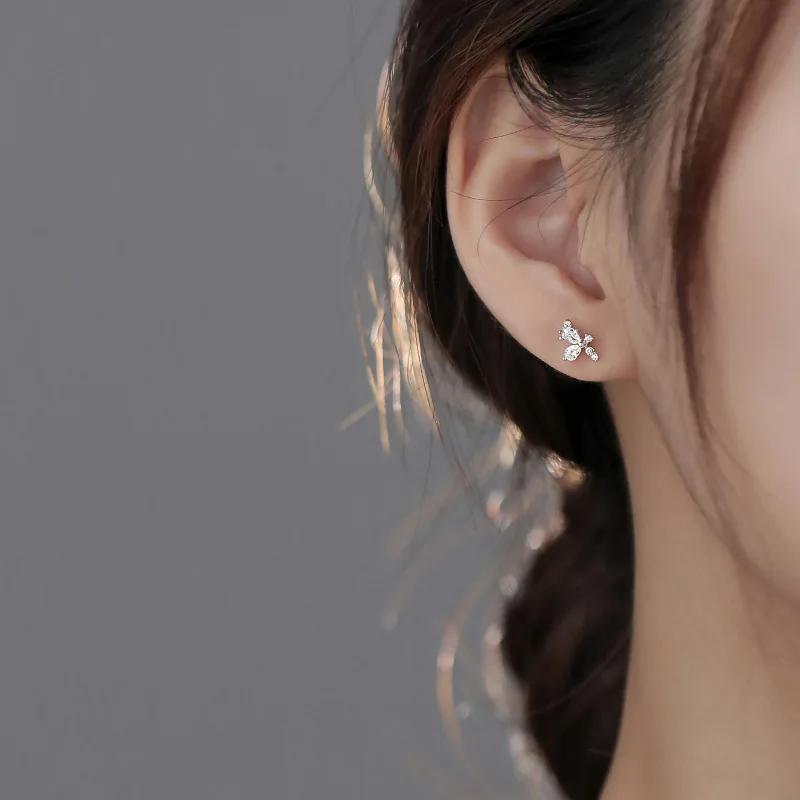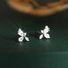 Real Sterling Silver Full Zircon Mini Flower Stud Earrings for Women Minimalist Fine Cute Plant Accessories