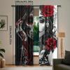 2pcs Gothic skeletons and red roses printed curtains pole bag curtains bedroom living room home decoration room decoration