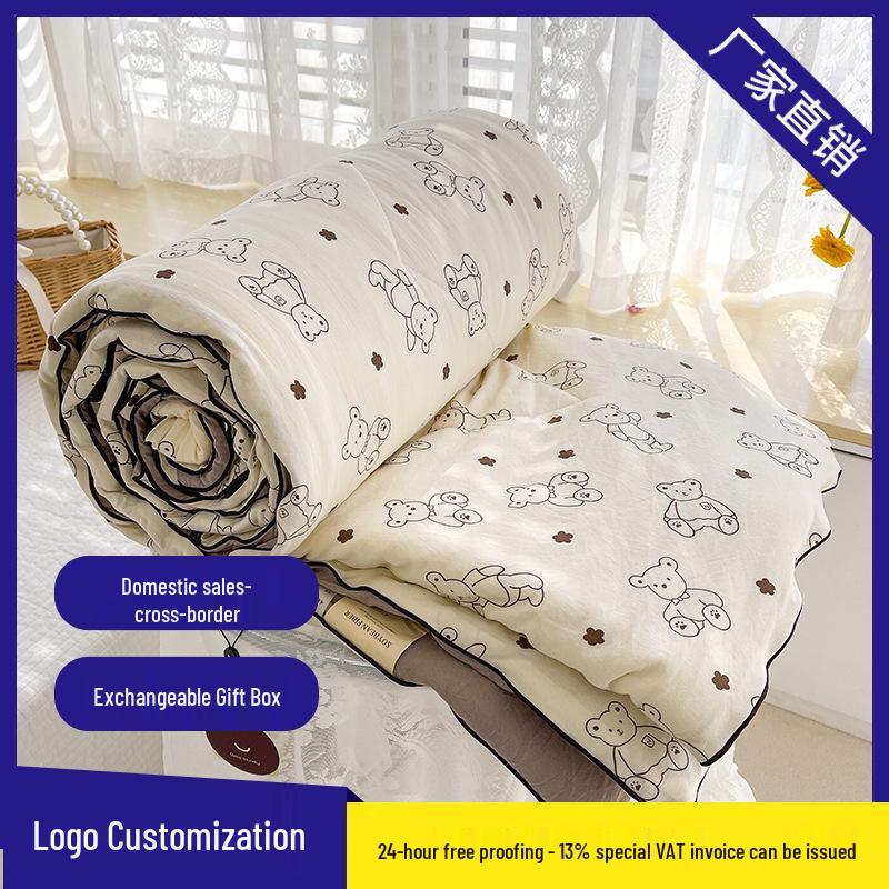 Letní prošívaná přikrývka z dvojité gázy - Bavlněná třída A, praná, pro koleje a klimatizované místnosti