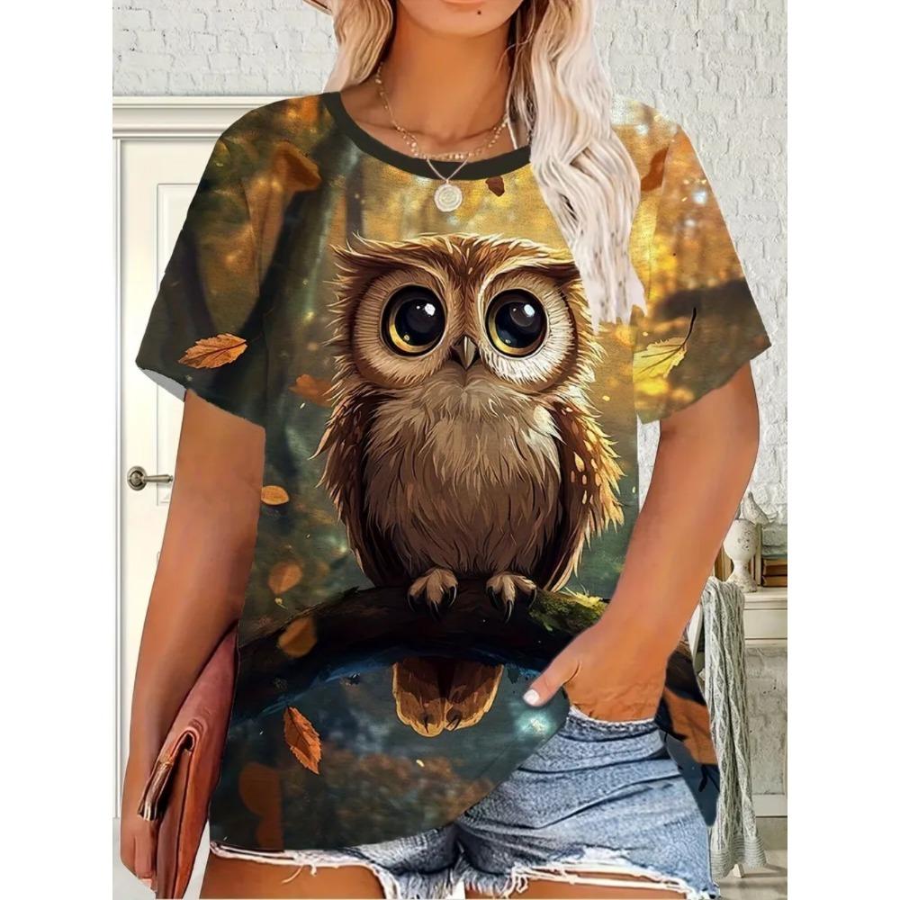 Summer Fashion Owl 3D Printing Casual Women's Short Sleeve T-Shirt Loose Oversized Comfortable T-Shirt