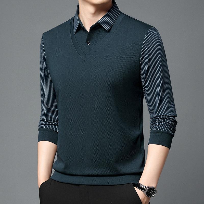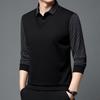 Men's Fake Two-piece Long-sleeved Polo Shirt with Elastic Fleece Thickened Lapel