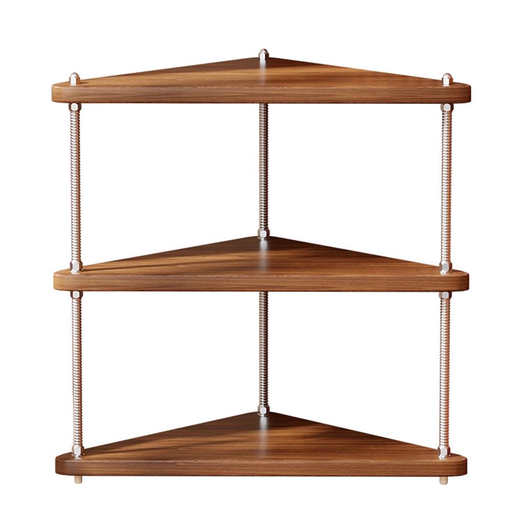 This wooden corner cup holder features three solid wood triangular tiers with metal posts, turning an unused countertop or sideboard corner into a neat coffee and tea station for multiple mugs and cups. The open 3-tier desktop mug rack keeps coffee mugs, tea tins, and small decor items organised and easy to reach without drilling, making it a space-saving wooden corner shelf for home kitchens, dining rooms, and offices.