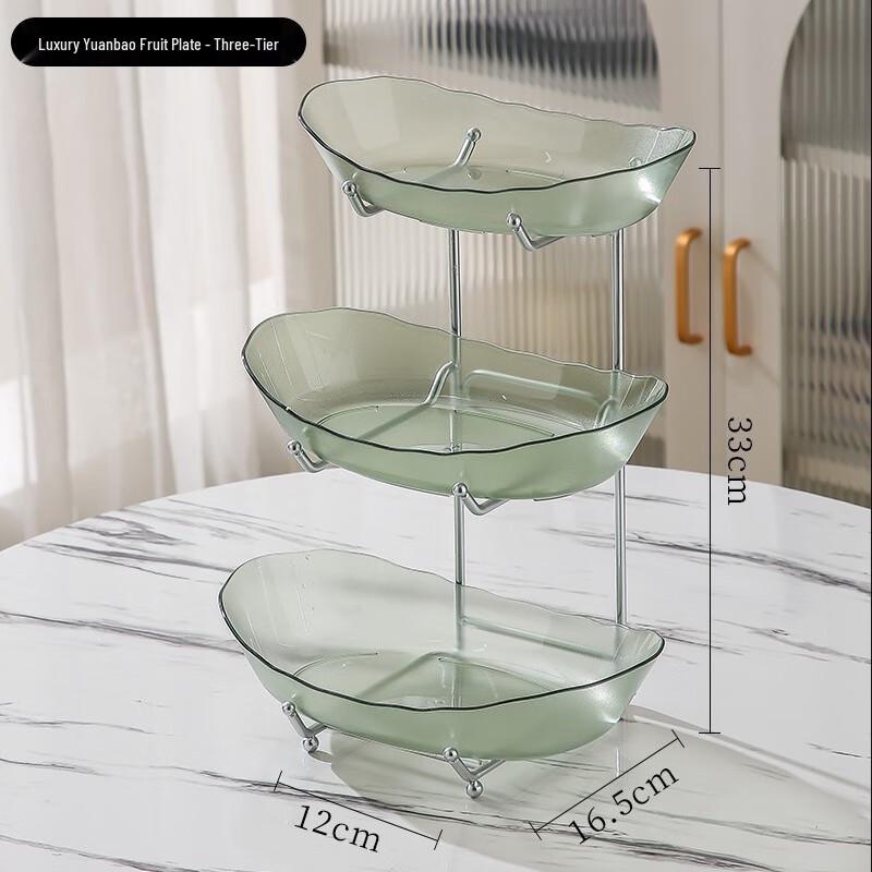Lehce luxusní třípatrový ovocný talíř se stříbrným stojánkem
