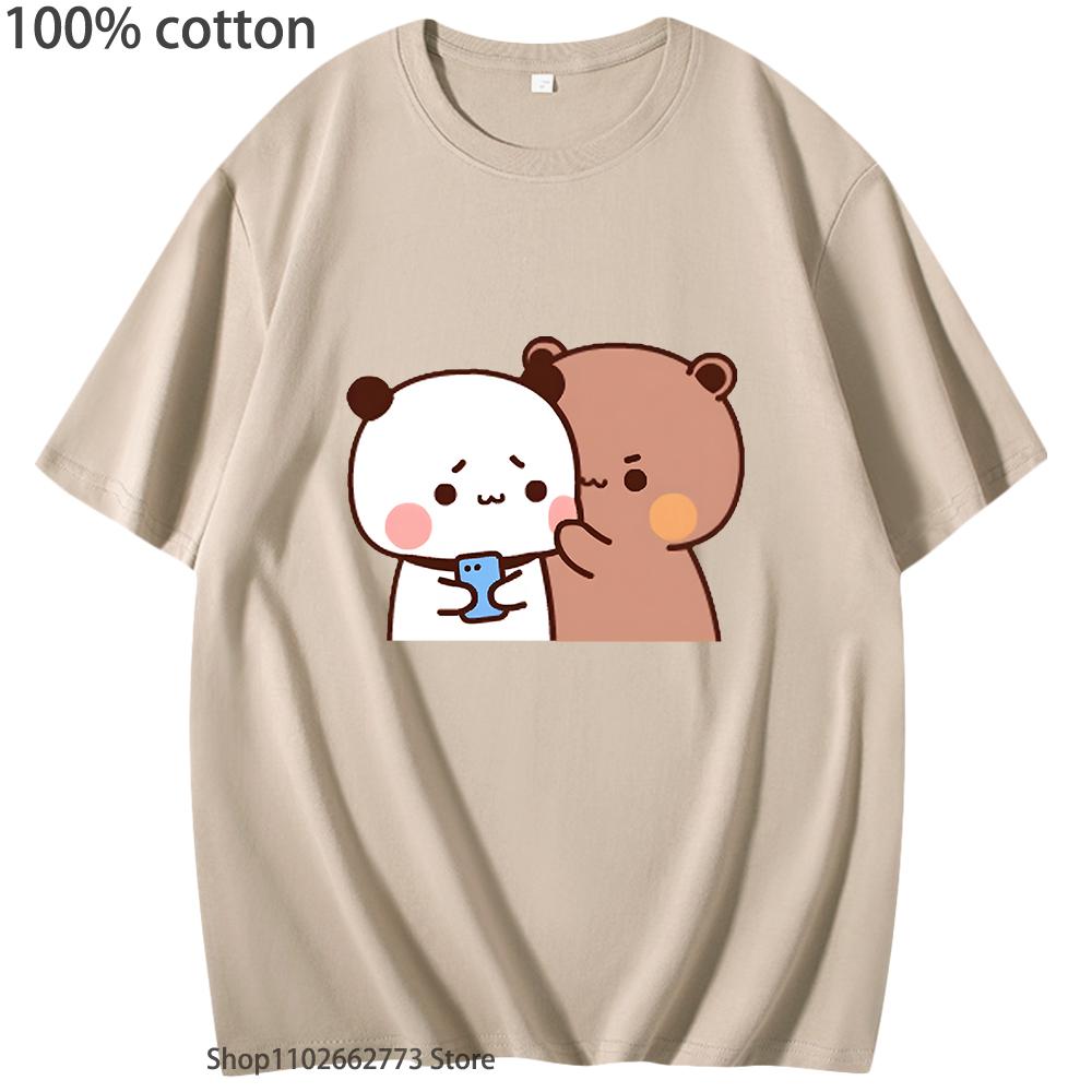 Roztomilý pár Dudu a Bubu se objímají Grafická trička Kawaii Medvídek Panda Tričko Roztomilá Vtipná Trička Dámské Pánské Bavlněné Oblečení