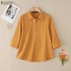 ZANZEA Women Casual Round Neck Solid Color 3/4 Sleeve Loose Blouse