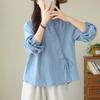 Literary and Art Foreign Trade Retro Women's Loose Spring and Autumn Shirt Diagonal Long-sleeved Temperament Cotton and Linen Blouse Shirt
