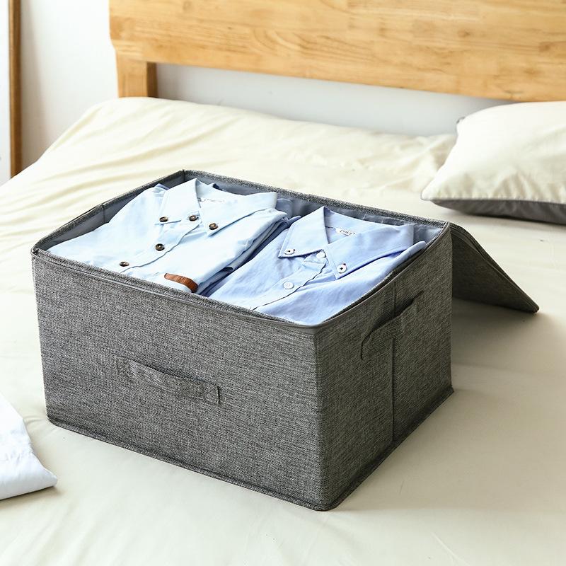 Solid Color Clothes Quilt Storage Box Underwear Sealed Box Cotton Linen Bedding Storage Organizer Wardrobe Tidy Case