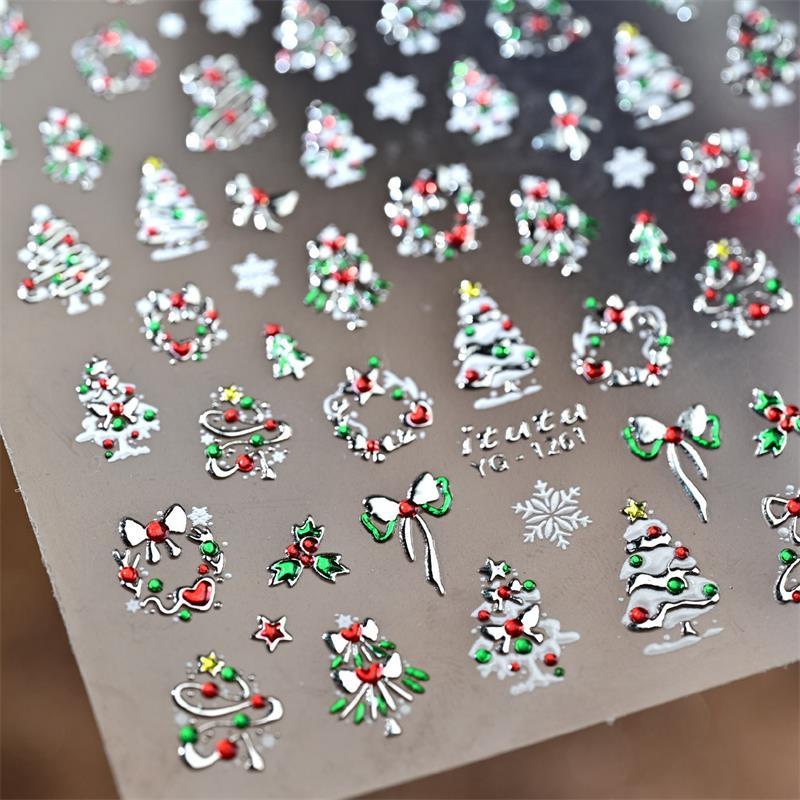Roztomilý Vánoční Styl Barevná Světla Puntíkovaný Vánoční Stromeček Nálepky na Nehty Mašle Vánoční Tisk Reliéfní Nálepky Dekorace Nehtů