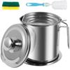 2/1.5L Oil Filter Fry Basket Oil Storage Can Pot Stainless Steel Oil Strainer Pot with Fine Mesh Strainer Grease Container Kitch