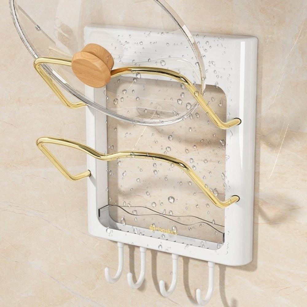 Space Saving Wall Mounted Pot Lid Holder Storage Rack with Hooks Chopping Board Stand Utensil Holder Drain Shelf Kitchen