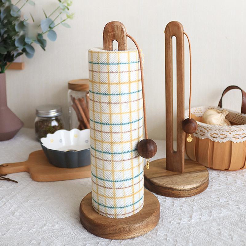 Dřevěný stojan na papírové utěrky Kuchyňský úložný stojan na role papíru Lenochod Plastový úložný stojan na sáčky s fólií Kuchyňské doplňky