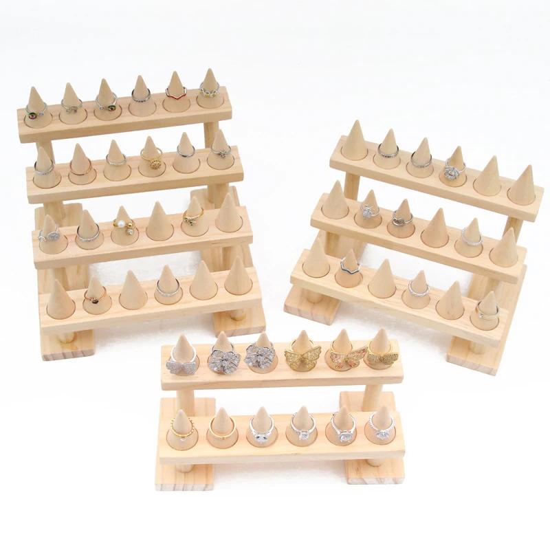 Wood Cone Ring Display Holder Jewelry Display Stand Ring Showcase Storage Tray for Counter Shows Base Shop Decor Display Rack