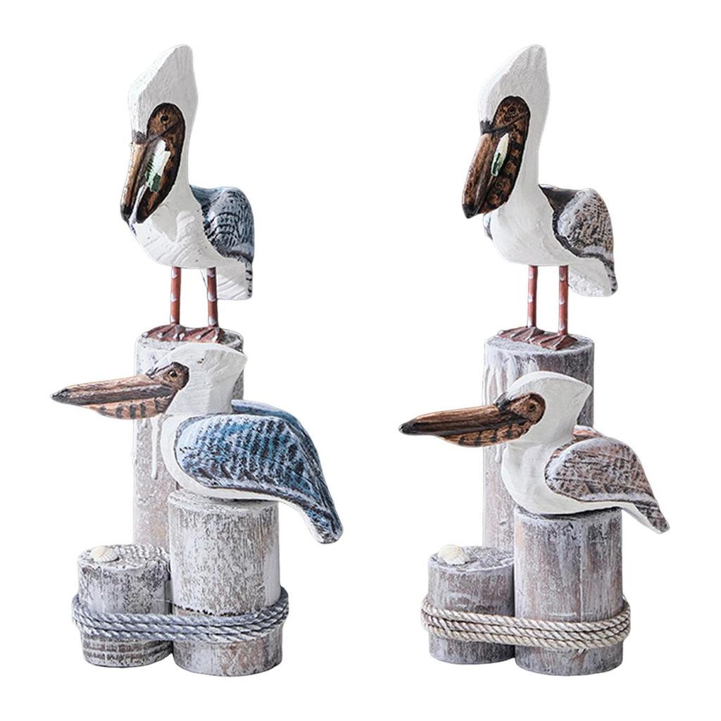 Nautical Statue Animal Figurine Wood Sculpture Bird Decor Ornament for Cabinet Bedroom Living Room Office Desktop