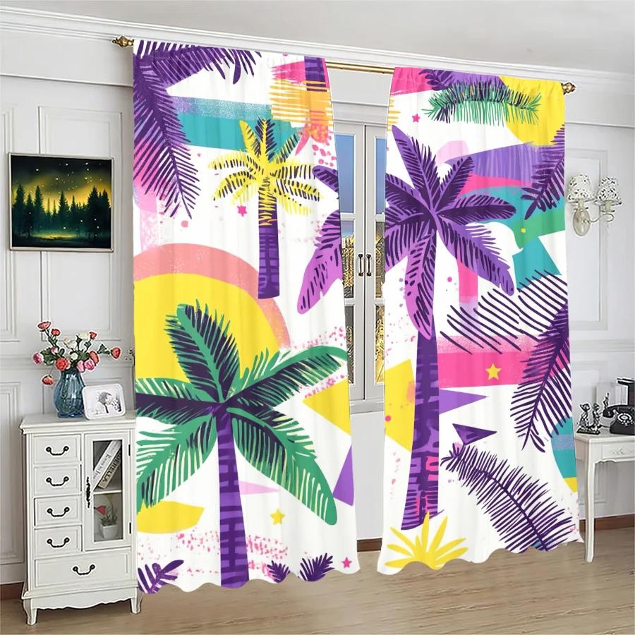 2pcs- Tropical coconut tree printed curtains pole bag curtains Christmas decorations home decorations room decorations