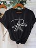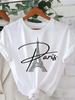 Paris Tower English Letter Print Pattern Women's Harajuku Short-Sleeve Oversized Y2K T-Shirt Casual Fashion Pure Cotton Apparel