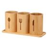 3 Pcs Bamboo Utensil Holder with Tray Cutlery Containers Drying Rack Kitchen Knife Spoon Fork Storage Tableware Organizer