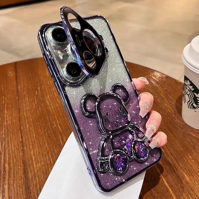 Miling Glitter Quicksand Bear Phone Case with Kickstand for Huawei Pura 70 Pro