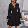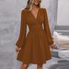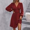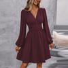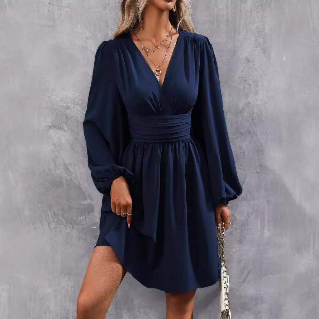 Spring Summer Women's Dress Solid Color Chest Wrapping V-Neck Lantern Sleeve Dress Women's Clothing