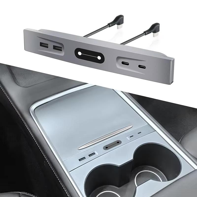 For Tesla Model Y&3 2025 2025 2025 Car USB Shunt Hub 27W Fast Charging Docking Station Center Console Adapter Type-C Accessories