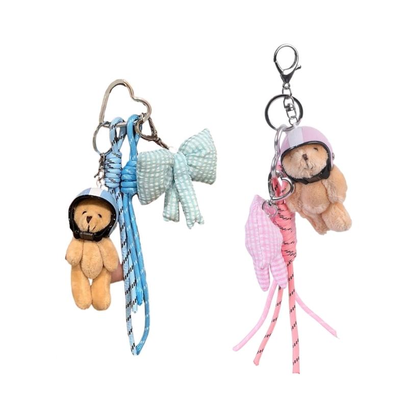 Adorable helmet bear keychain with a bowknot charm adds playful flair to keys, backpacks, or outdoor gear, blending whimsicals design with practical functionality for everyday use.