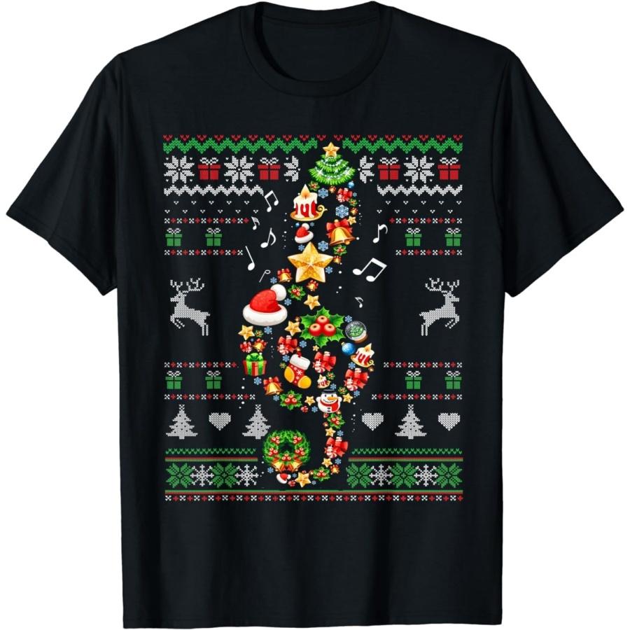 Music Note Christmas Ugly Sweater Musical Teacher Sing Carol T-Shirt NGO Mens Womens Tank Top Sweatshirt Hoodie Black