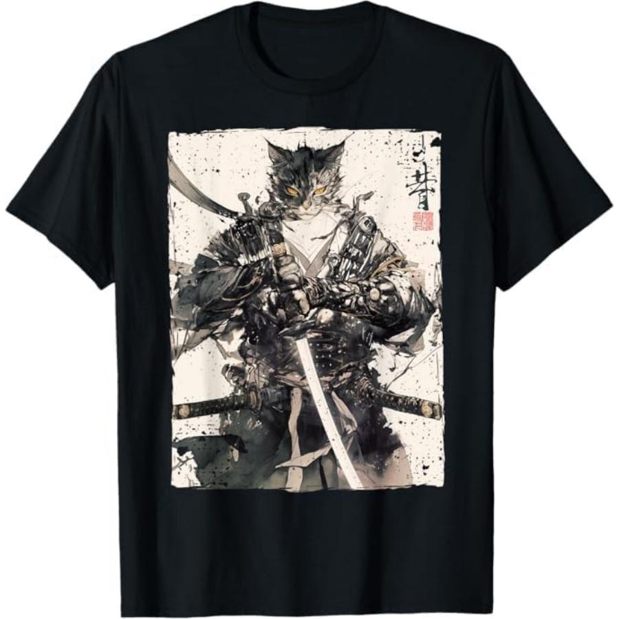 Samurai Cat Warrior Ukiyo Ink Artwork Cat Samurai T-Shirt Thuy Mens Womens Tank Top Sweatshirt Hoodie Longsleeve 105 Black
