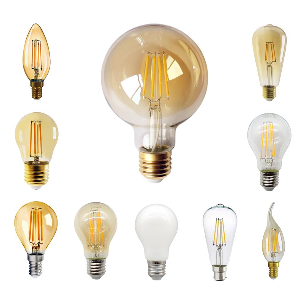6PCS LED Filament Light Bulb Retro Edison E27 E14 B22 4000K 2700K 220V A60 G45 C37 Vintage Ampoule Incandescent Bulb Edison Lamp