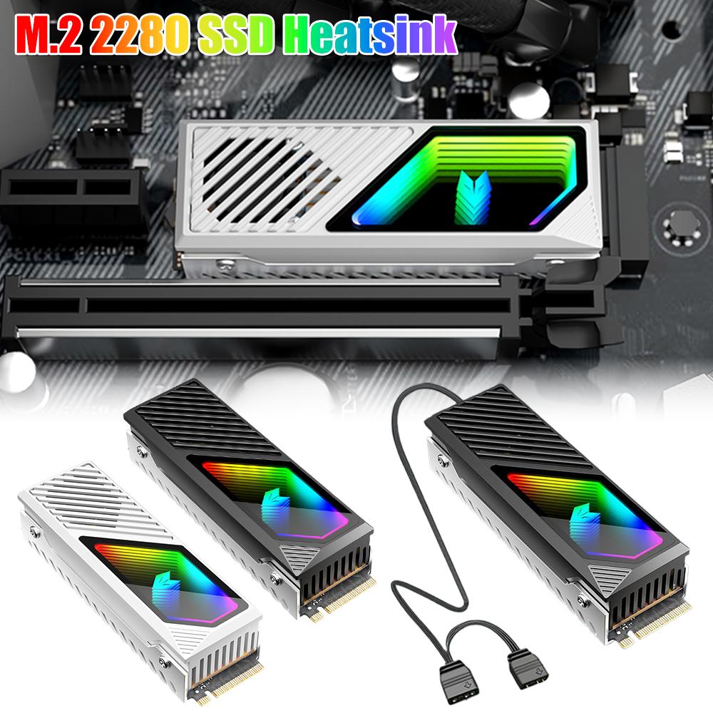 NEW M.2 SSD Heatsink 2280 SSD Cooling Fan Hard Drive Heatsink with Thermal Silicone Pad Aluminum Alloy ARGB M.2 Radiator Cooler