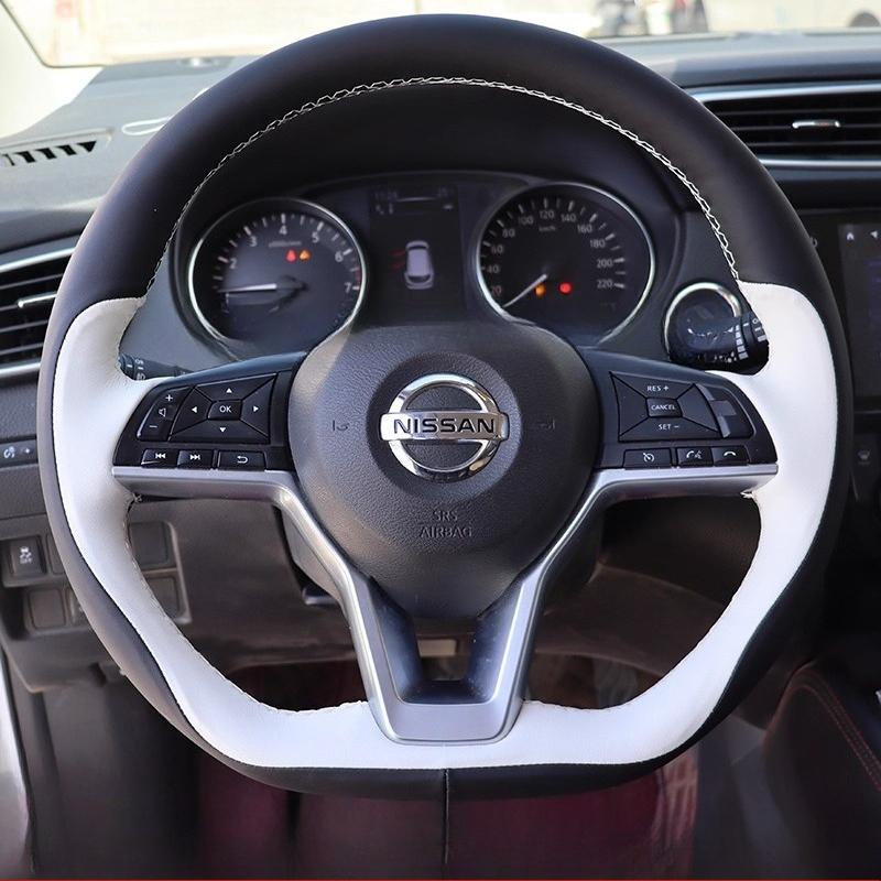 Ručně šitý protiskluzový černobílý kožený potah na volant auta Pro Nissan X-Trail Qashqai Rogue (Sport) 2017-