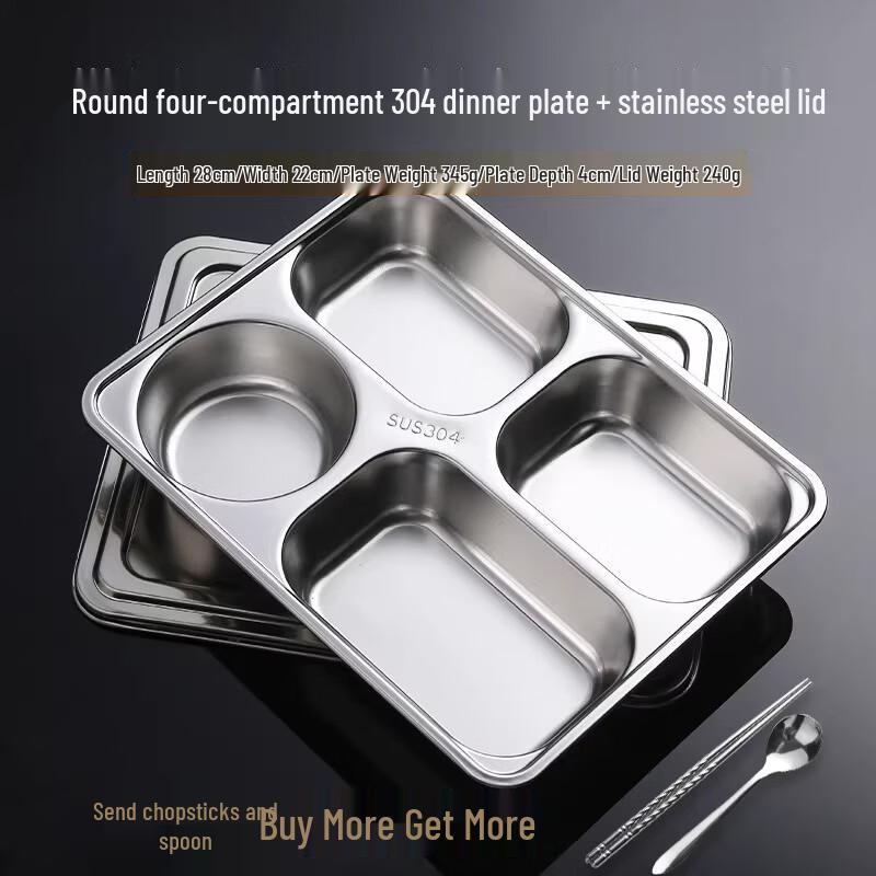 304 Stainless Steel Deep Divided Lunch Tray with Lid