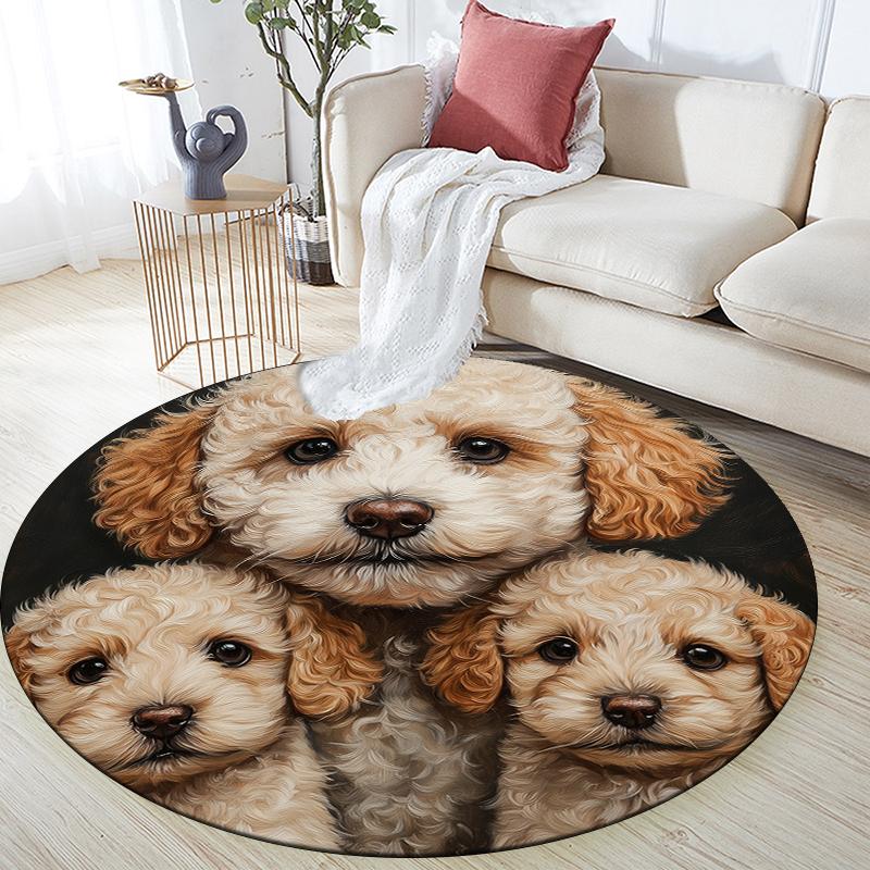 Black Teddy Dog pattern round rug,Carpet Rug for Living Room Bedroom Playroom ,Non-slip Floor Mat,Holiday Gifts and Birthday Gifts.