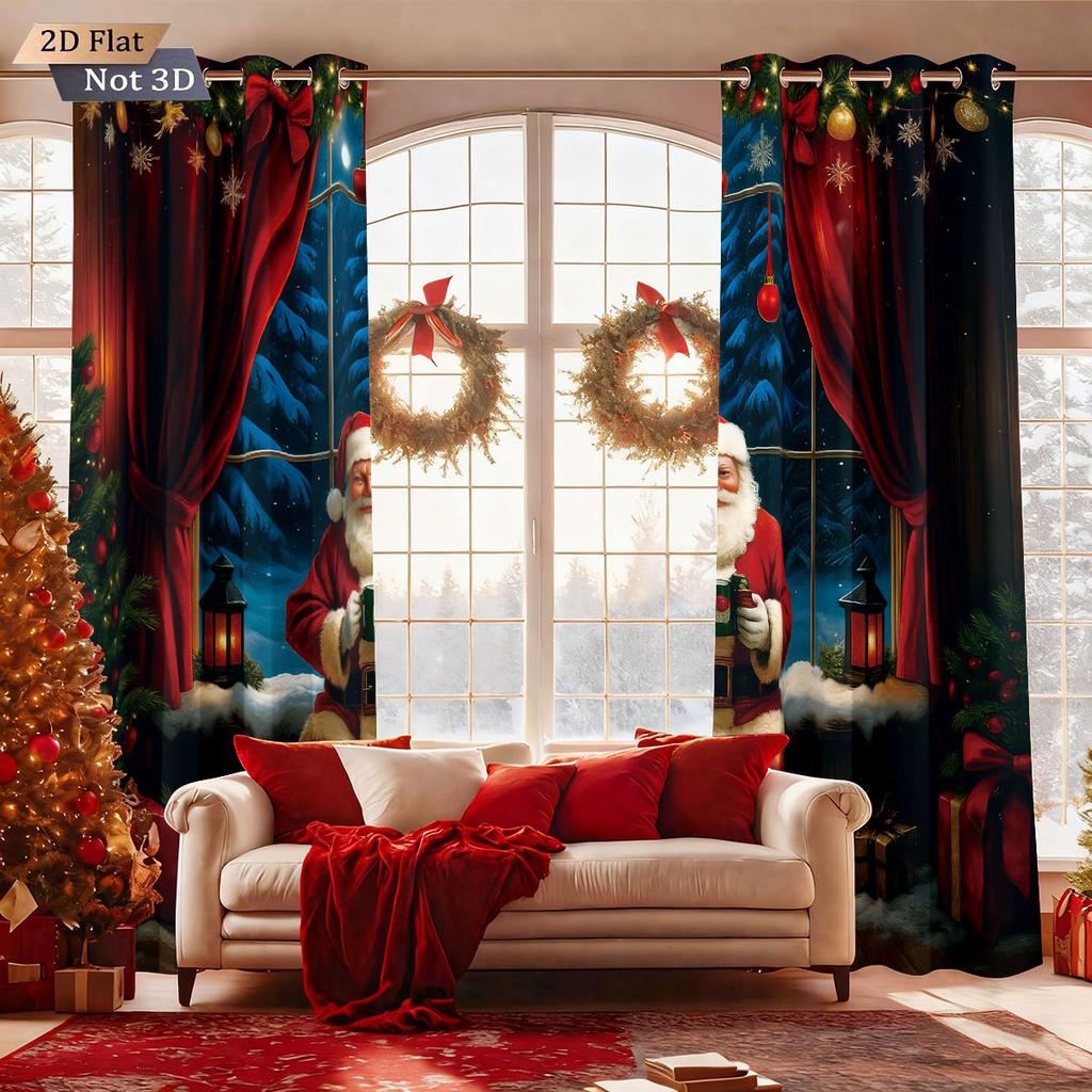 2pcs Merry Christmas Santa Claus print perforated blackout curtains multi size living room insulation holiday decoration