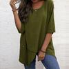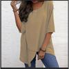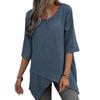 Women's Cotton Linen Round Neck Irregular Shirt Five-quarter Sleeve Tops Women’s