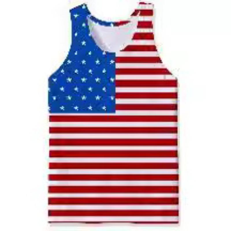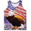 Men's O-Neck Eagle American Flag Pattern Print Tank Tops 3D Printed Vest Loose Sports Fitness Sleeveless Shirt