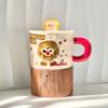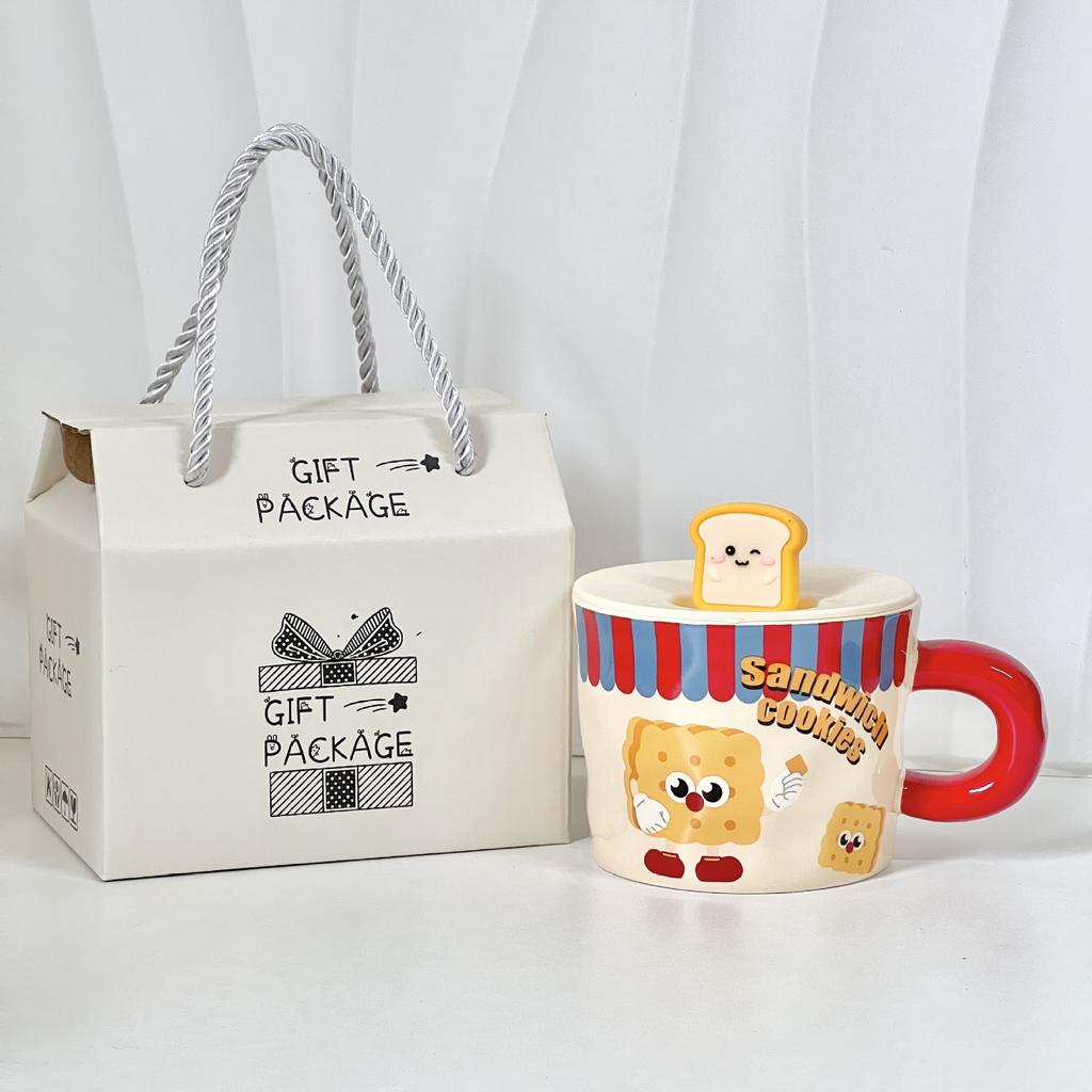 Cute toast drinking mug with lid girl birthday gift high value home office ceramic mug