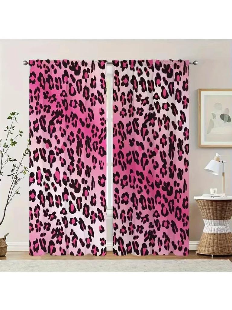 2PCS pink leopard print curtains with pole bag design protecting privacy and suitable for various decorative scenes