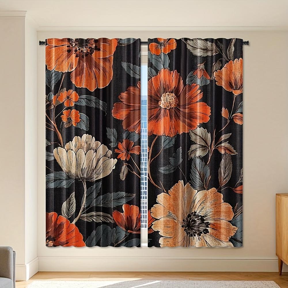 2pcs Mid Century Curtain Black Floral Boho Curtain for Living Room and Bedroom Window Drapes