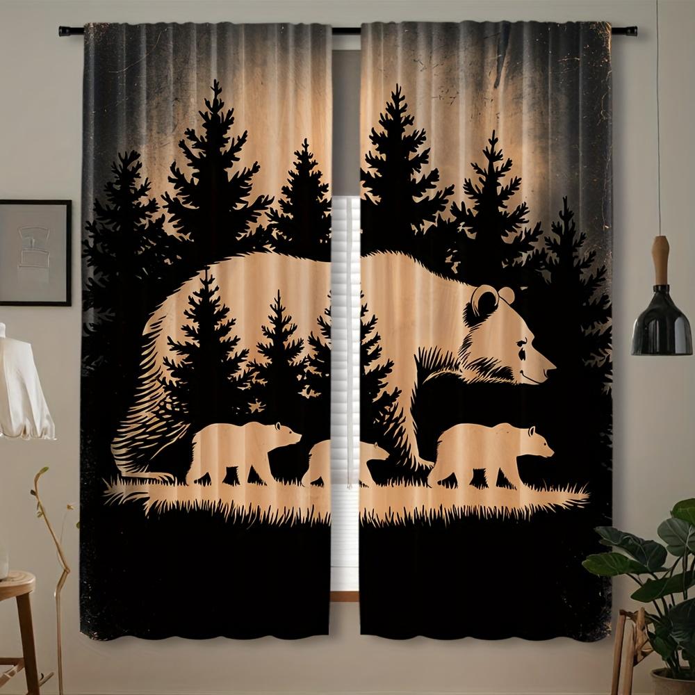 2pcs Black Bear Family Forest Scene Semi-Sheer Curtains Contemporary Woven Polyester Pongee for Bedroom All-Season Decorative