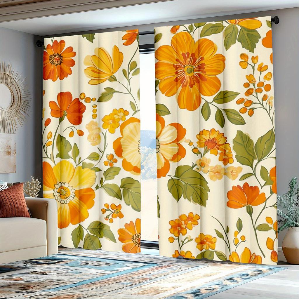 2pcs Decorative Curtains70s Style Castle Fairy Curtains Watercolor Yellow Flowers Green Leaves for Living Room