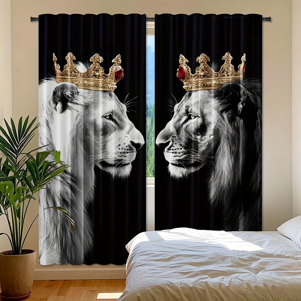 2pcs Crown Tiger Lion Style Door Curtains - High-Quality Polyester Machine Washable Rod Pocket Easy Install Semi-Translucent