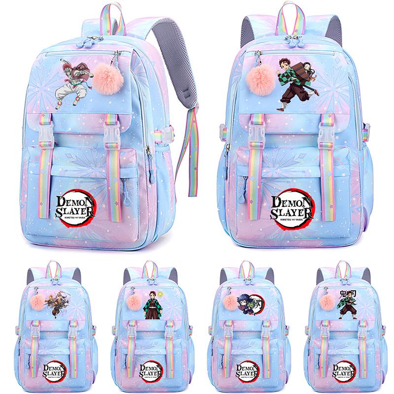 Roztomilý anime batoh s potiskem Demon Slayer pro dospívajícího studenta Školní taška Velkokapacitní Vodotěsná Cestovní taška Dárek