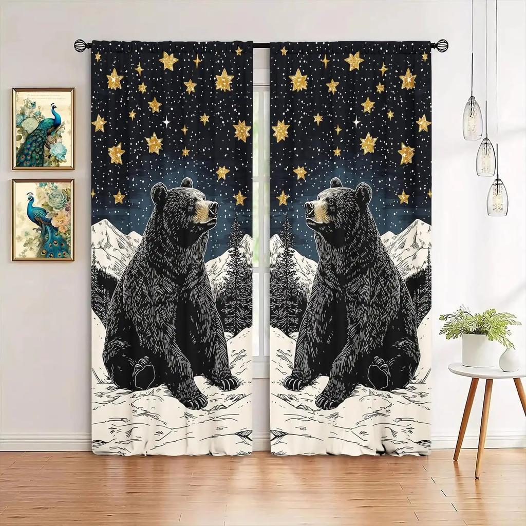 2pcs Starry Bear Pattern Curtain Blackout Polyester for Holiday Window Decor Home Decor Rod Pocket Curtain