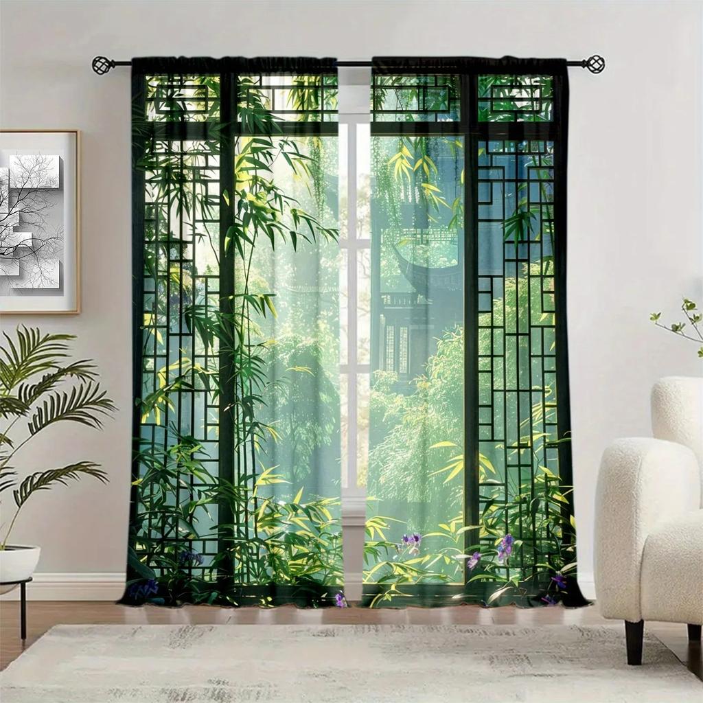 2pcs Verdant Bamboo Curtain Rod Pocket Drapes Privacy Window Treatment Living Room Decor Holiday Window Decor Nature Home De