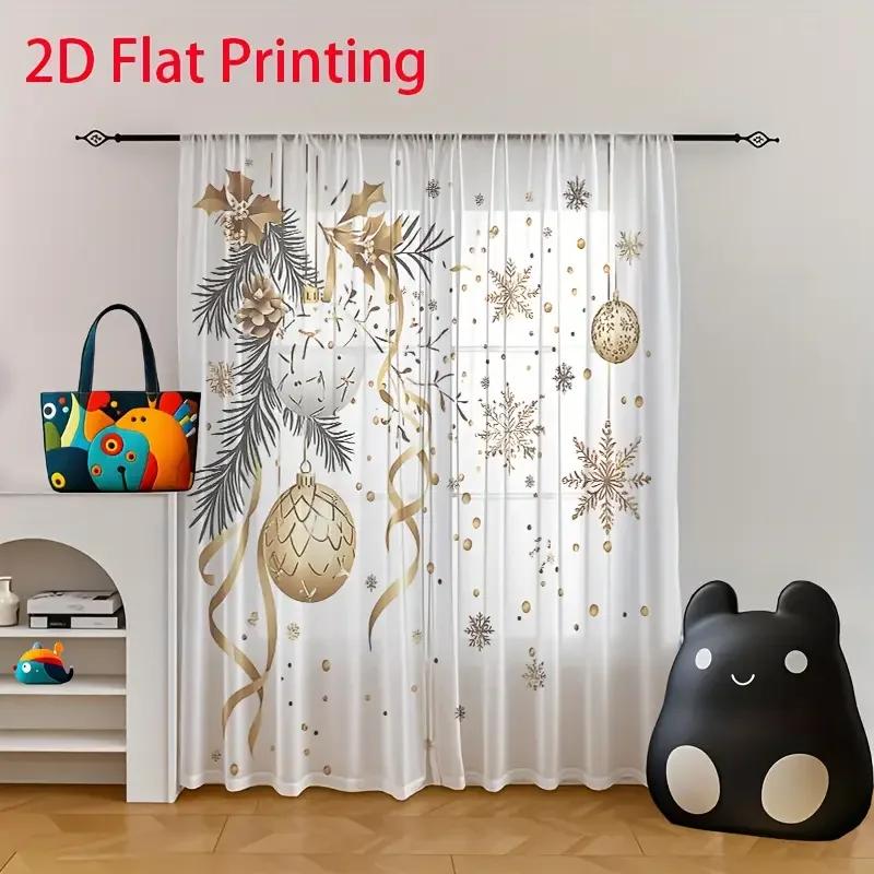2pcs Christmas Deer Christmas Tree sheer curtains with pole bag design suitable for decoration in various scenes