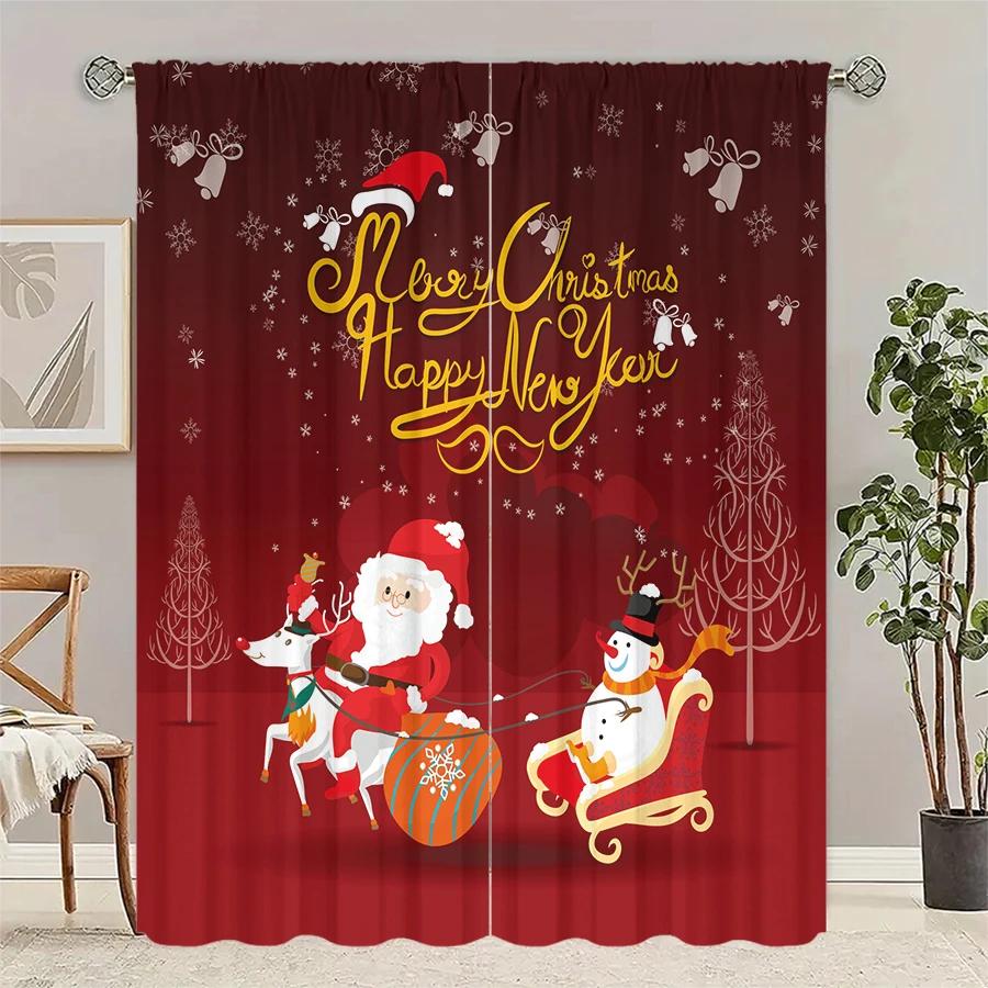 2PCS- Christmas Santa Claus Christmas tree pattern printed curtains Christmas decorations home decorations room decorations