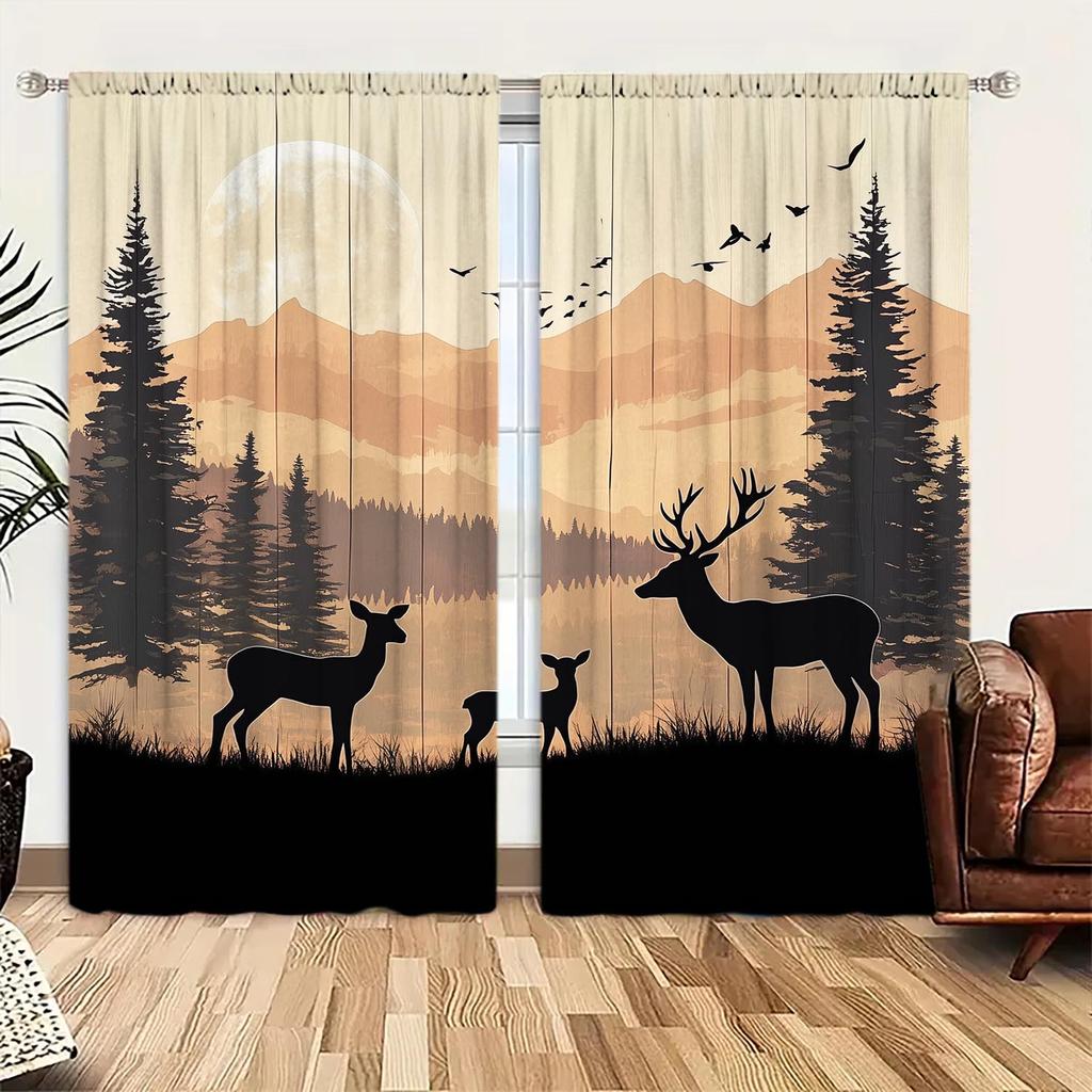 2pcs Nordic Elk Forest Silhouette Curtains Suitable for Family and Friends Sunshade and Privacy Protection