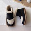 Ploché zimní sněhule ke kotníku s kulatou špičkou, dámská obuv 2025, módní ohrnutý okraj, jednoduchý nízký podpatek, dámské boty Botas