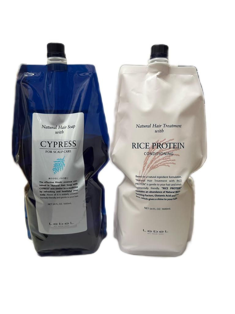 [Natural Hair Soap Cypress] Highly antibacterial cypress essence (hinokitiol) and licorice extract (dipotassium glycyrrhizinate) prevent dandruff and itchiness, keeping your scalp clean and healthy. [How to Use] Squeeze an appropriate amount into your palm and apply to your hair. [Ingredients] Salicylic acid, paraben, purple no. 401, red no. 106, fragrance. [Natural Hair Treatment Rice Protein] This conditioning treatment contains rice protein and rice germ oil (moisturizing ingredients) to retain moisture and leave hair smooth and silky all the way to the ends. [How to Use] After shampooing, apply an appropriate amount to your hair. Leave on for a while, then rinse thoroughly. Ingredients: Water, Honey, Cetearyl Alcohol, Dimethicone, Hydrogenated Polyisobutene, Cetrimonium Bromide, Stearyl Alcohol, Rice Germ Oil, Hydrolyzed Rice Protein (Wheat), Steartrimonium Chloride, Cocamidopropyl Betaine, Fragrance, Sodium Citrate, Propylparaben, Methylparaben, Ethanol, Isopropanol