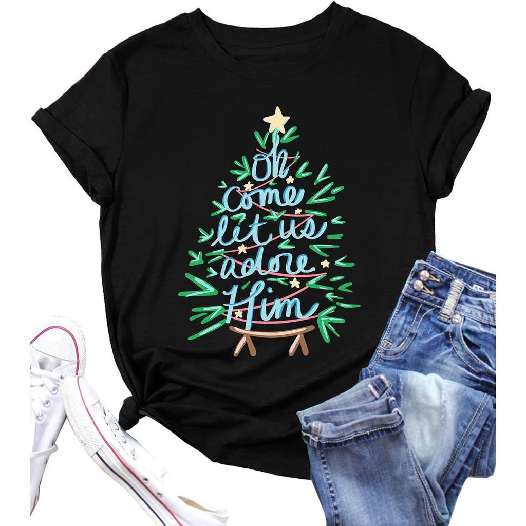 Christmas Shirt for Women Christian Christmas Shirts Religious Prints Tshirts Xmas Holiday Short Sleeve Tops