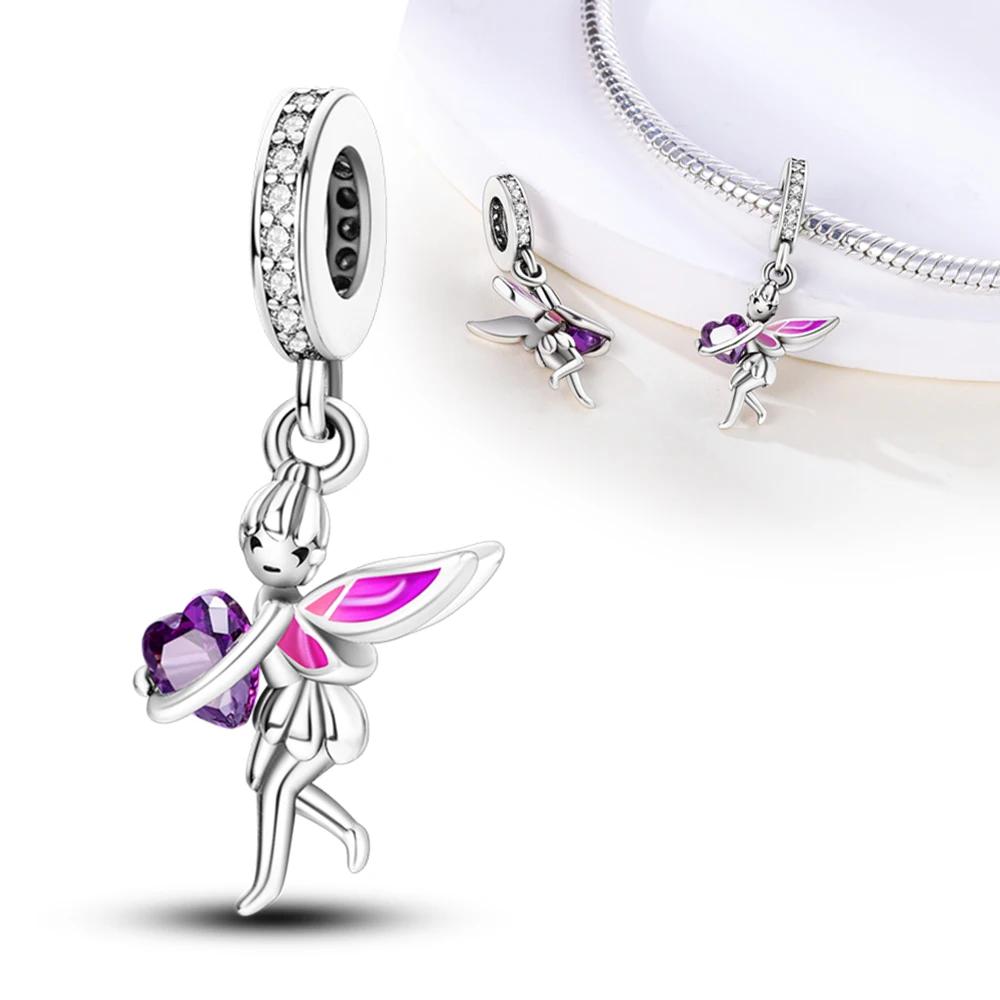 Charms Copperpurple-Pink Fairy Heart-Shaped Beads Fit Charms Plataoriginal Bracelet Beads Women Jewellery Making